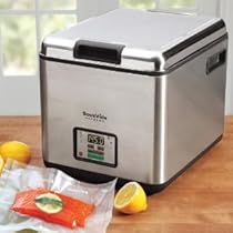 SousVide Supreme Sous Vide Water Oven. The SousVide Supreme is the worlds first water oven designed specifically to bring the gourmet sous vide cooking method into home and small restaurant kitchens. Sous vide cooking locks in the flavor and preserves the nutritional quality of whatever food is cooked inside. The result is food of incomparable taste and texture: steak perfectly cooked edge-to-edge vibrant vegetables juicy tender chicken breasts and ribs with the meat literally falling off the bone. All at the push of a button. Features: Sleek all-in-one design Precise temperature control to 1 degree Fahrenheit (0.5 degrees Celsius) Energy efficient engineering Quiet operation Push button simplicity Lid doubles as drip tray for pouch transport Universal rack for easy positioning of cooking pouches Counter worthy style in a small footprint (size of a bread maker) 14.2" x 11.5" x 11.4" - 13 lbs.